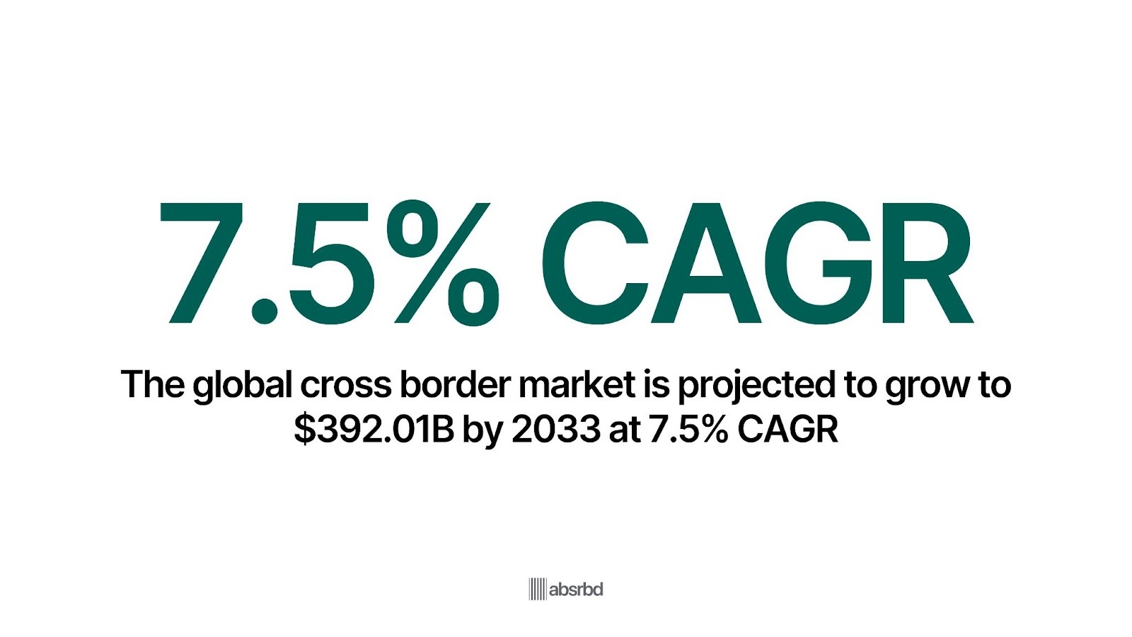 - The cross-border payments market is expected to reach USD 243.1 billion by 2026 and grow to USD 392 billion by 2033, reflecting a 7.5% CAGR.