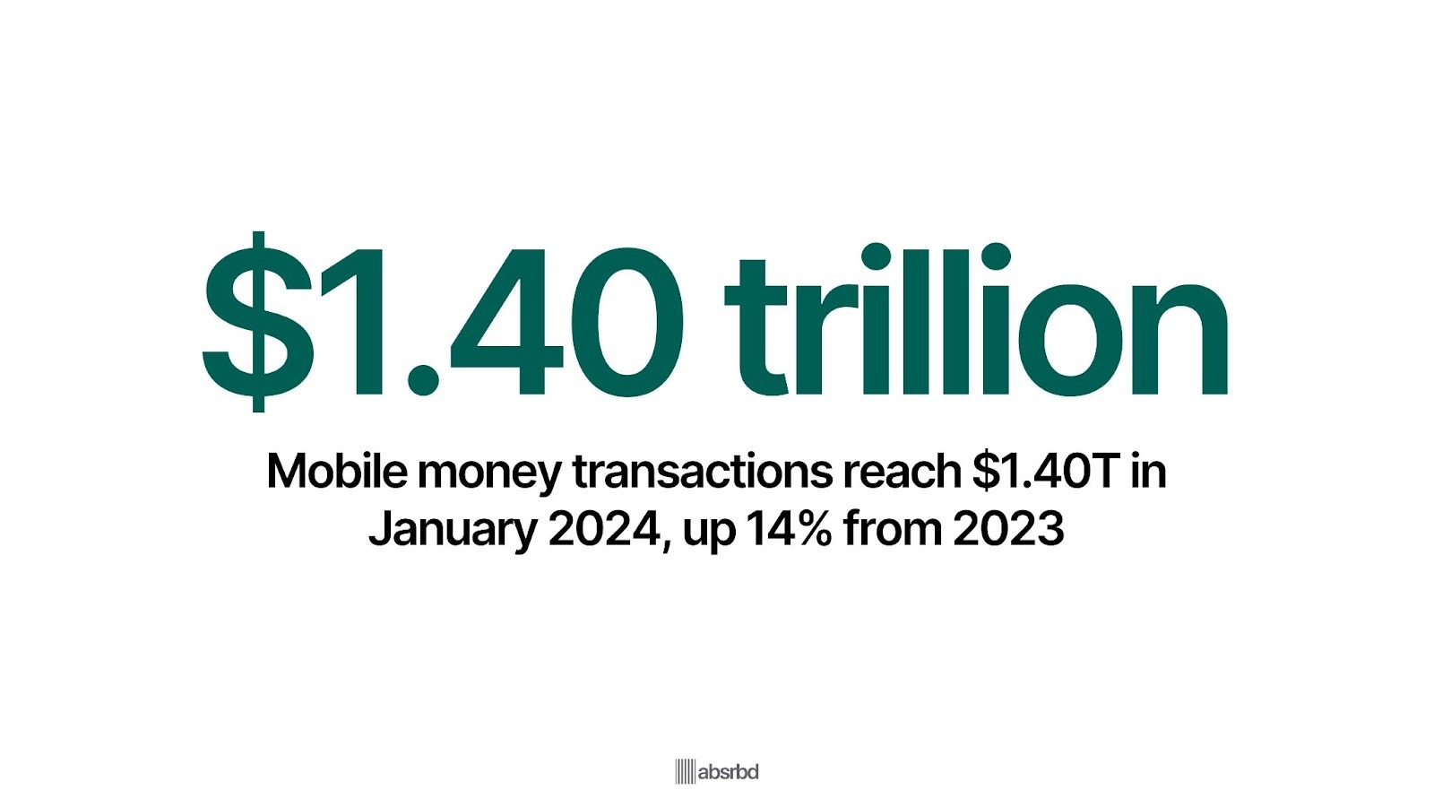- Mobile money transactions worldwide reached $1.40 trillion by January 2024, showing a strong 14% growth from $1.26 trillion in January 2023. Digital Virgo