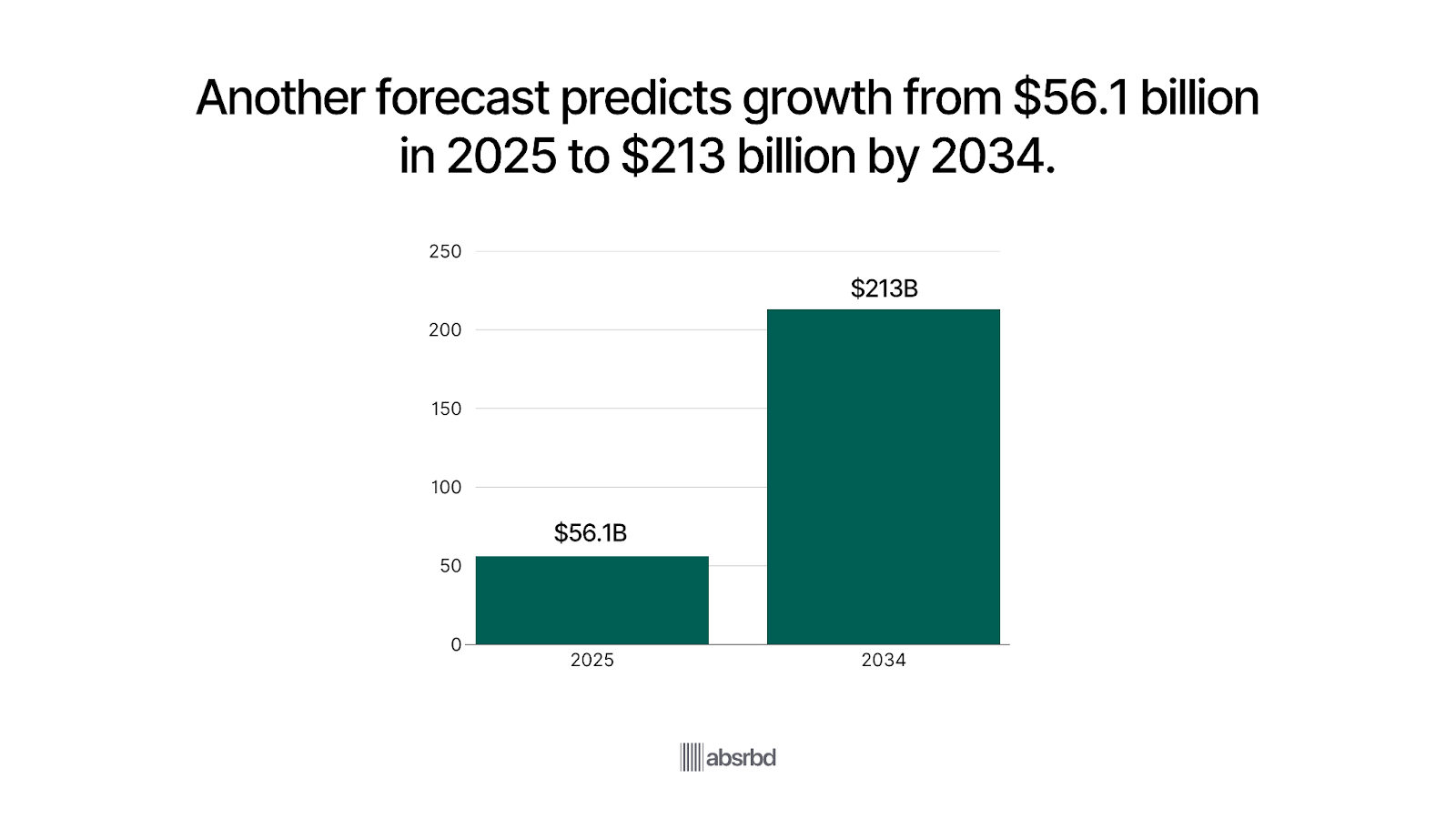 - Another forecast Precedence Research estimates the market will grow from USD 56.11 billion in 2025 to about USD 213.39 billion by 2034 at a CAGR of 16%. Precedence Research