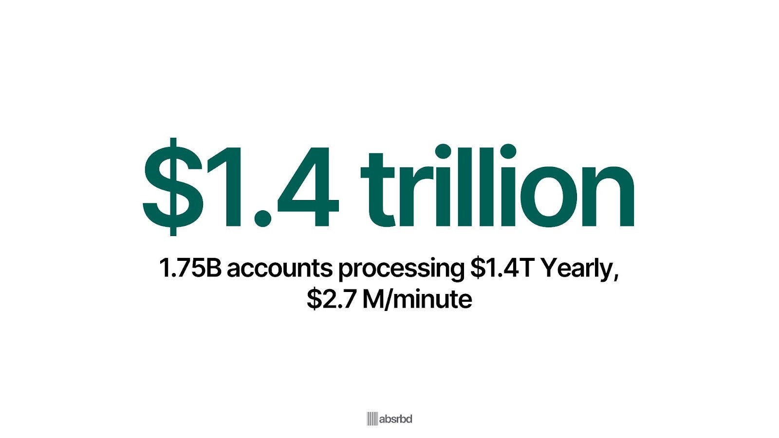 - Today, 1.75 billion registered accounts are processing $1.4 trillion a year, or about $2.7 million a minute.