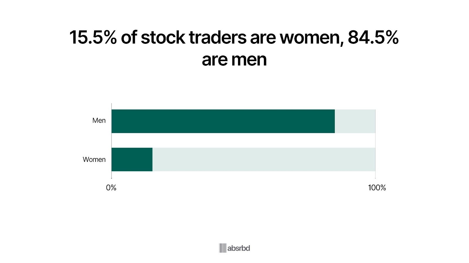 - 15.5% of stock traders are women, and 84.5% are men. Zippia