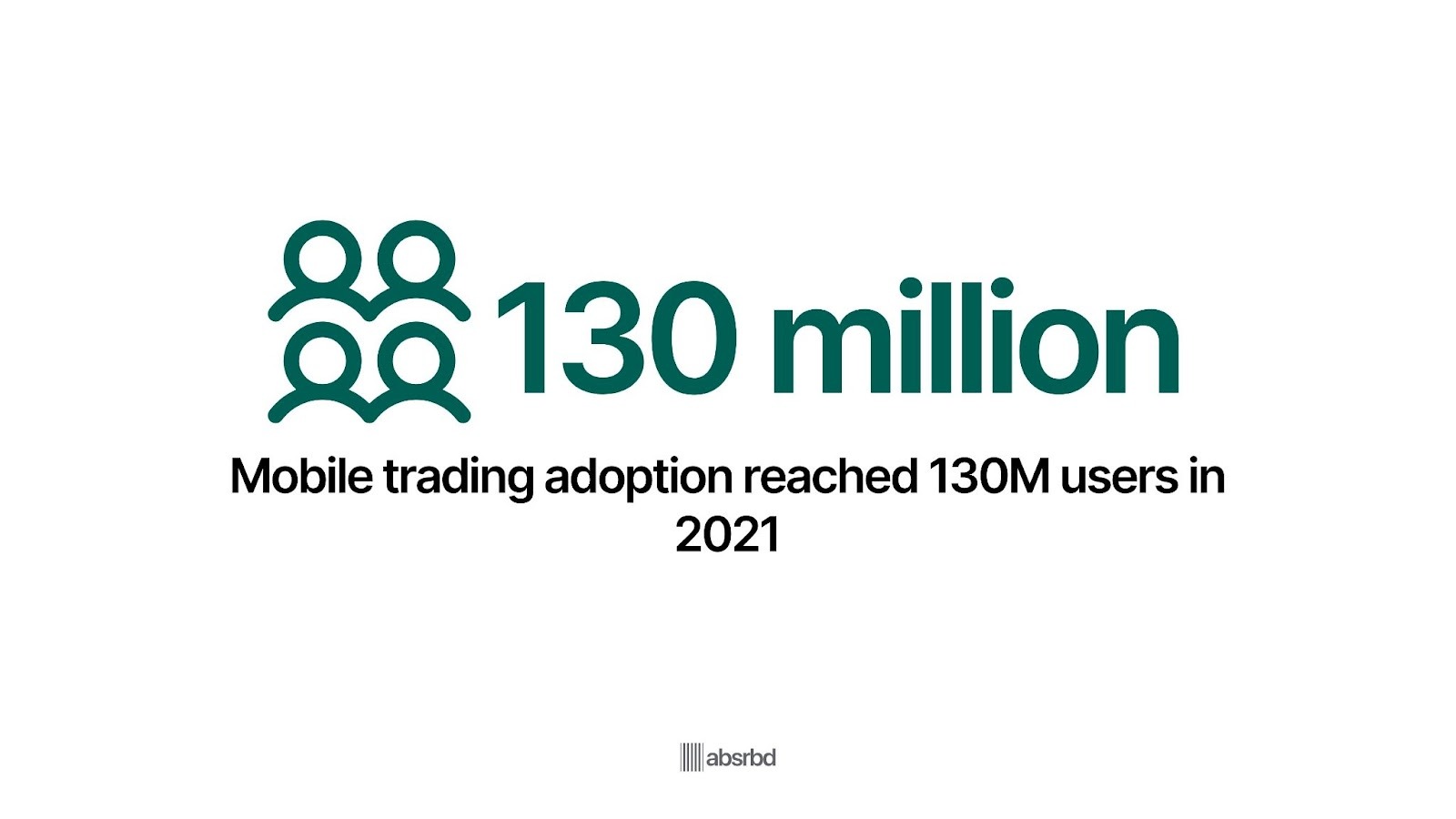 The adoption of mobile trading applications has skyrocketed. In 2021, 130 million people used mobile apps to trade stocks, an increase from 51.9 million users in 2019.