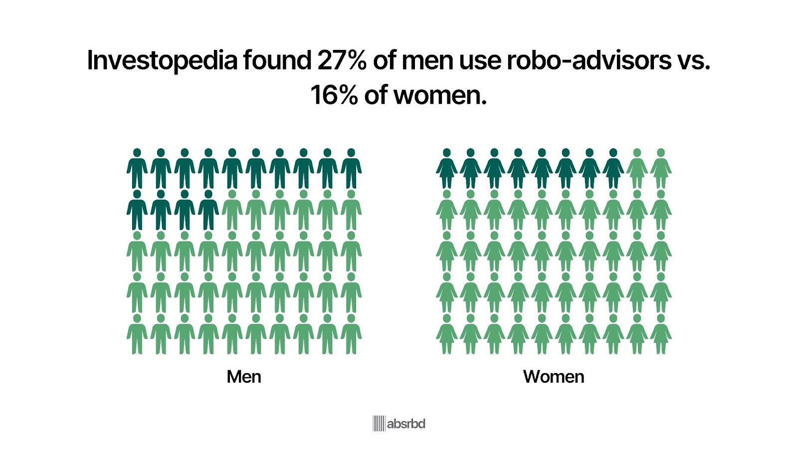 - A survey by Investopedia states that 27% of male respondents use robo advisor versus 16% of women.